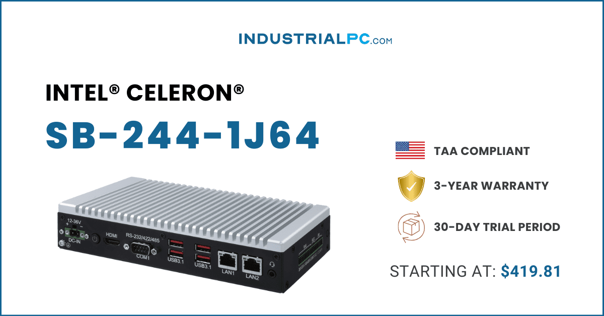 The SB-244-1J64 is more than just an industrial PC; it’s a versatile solution designed to meet the evolving demands of modern automation. Packed with features like quad Gigabit LAN, 4K video output, and ample expansion options, this fanless PC delivers reliable performance in even the harshest industrial environments.